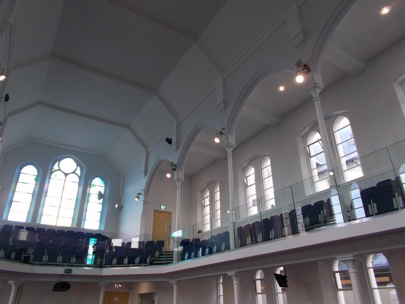 Following on from the successful renovation and refurbishment of the outside of the church, PDC were invited back to project manage a full internal refurbishment of the main auditorium. The works included the redesign of the main stage area, installation of a new first floor glass balustrade and theatre style seating. New sound, lighting and audio visual systems were also installed along with the replacement of all fixtures/fittings and floor coverings. Liaison with sub-consultants, such as structural engineers was undertaken, to ensure the works specification was comprehensively prepared to ensure accurate tender quotations. Contract administration and site supervision was carried out, with the works completed on time and within the budget.